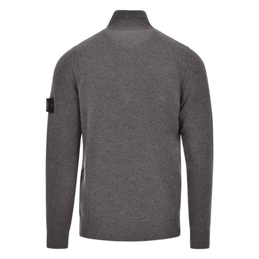 Stone Island Lambswool 1/4 Zip Buttoned Cement Melange Grey Sweatshirt