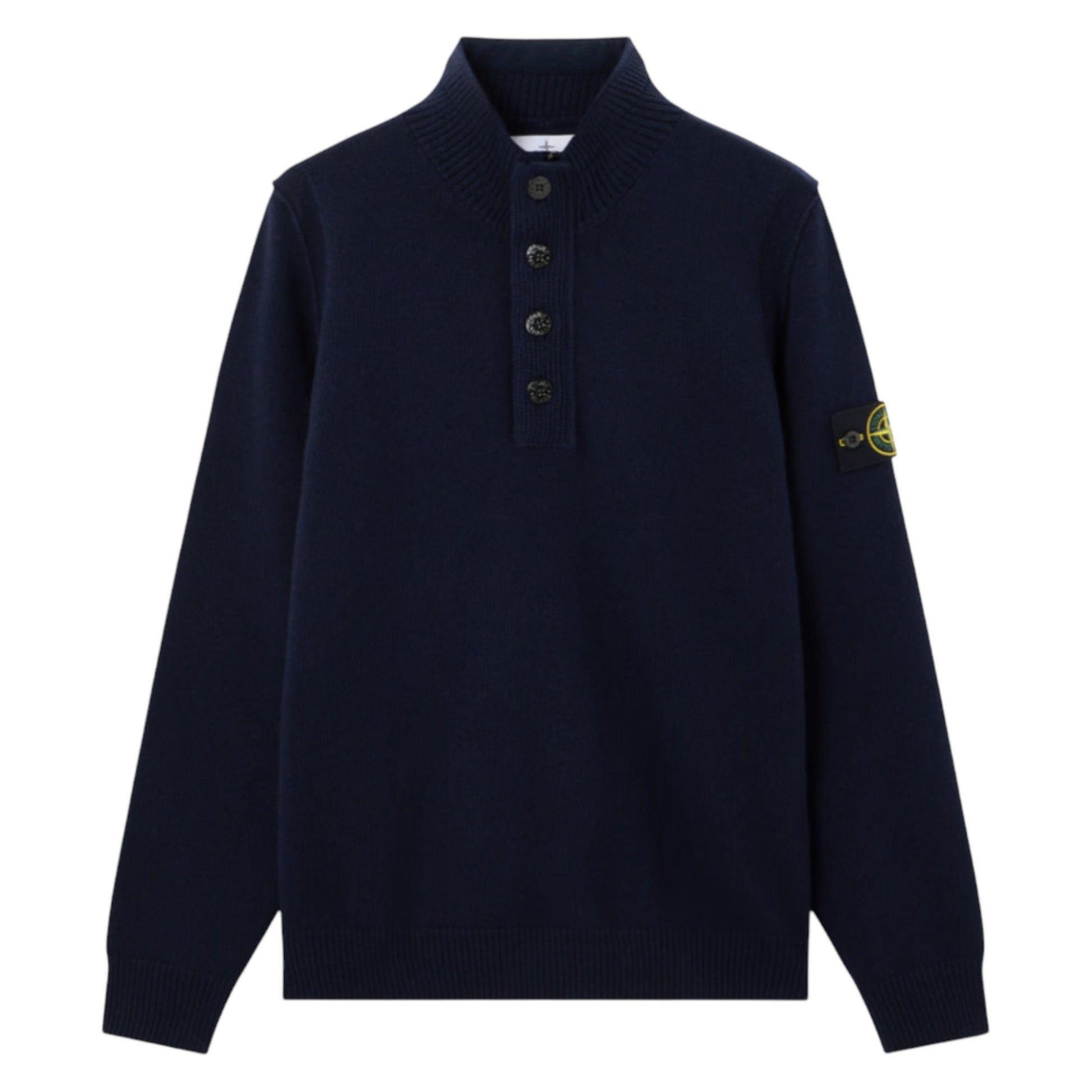 Stone Island Lambswool 1/4 Zip Buttoned Navy Sweatshirt