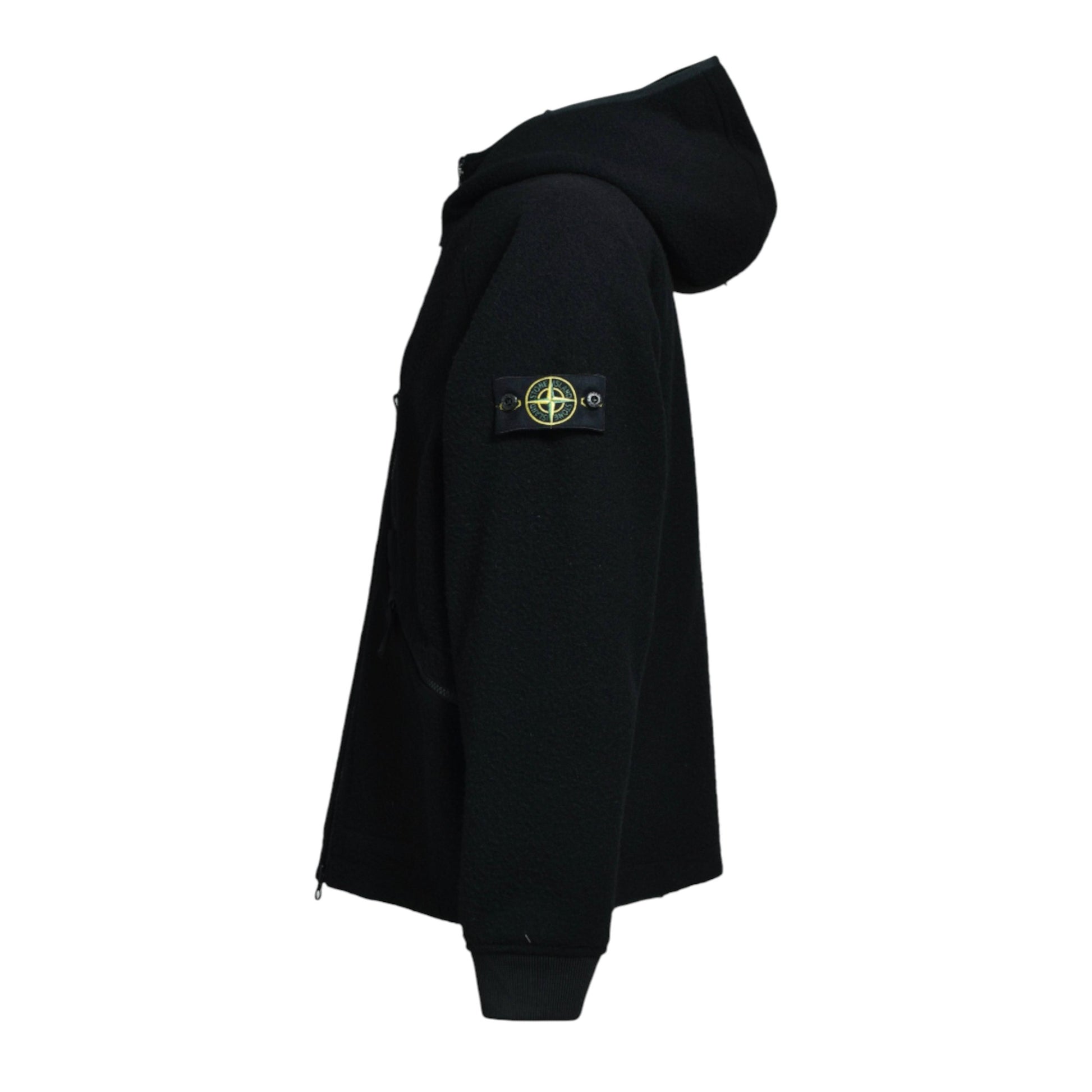 Stone Island Virgin Wool And Nylon Black Ratinated Jacket
